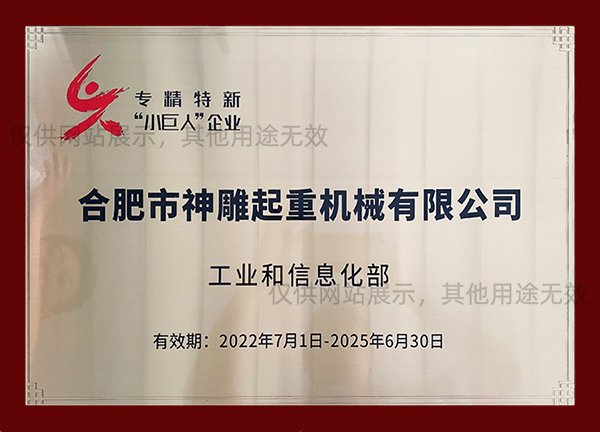 合肥神雕起重是高新技術企業,是安徽省科創板掛牌企業(證券代碼:630331),同時榮獲安徽市場質量、誠信五星級企業、合肥經濟圈示范企業、合肥市創新型企業、安徽省市場質量放心產品等榮譽稱號